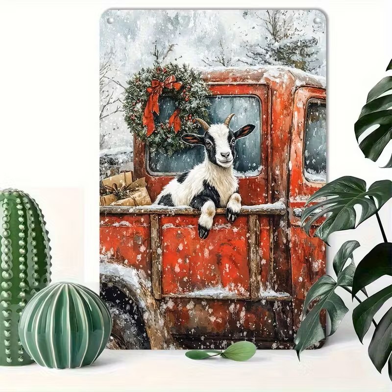 12" x 8" "Vintage" Christmas Goat Sign. Weather resistant aluminum